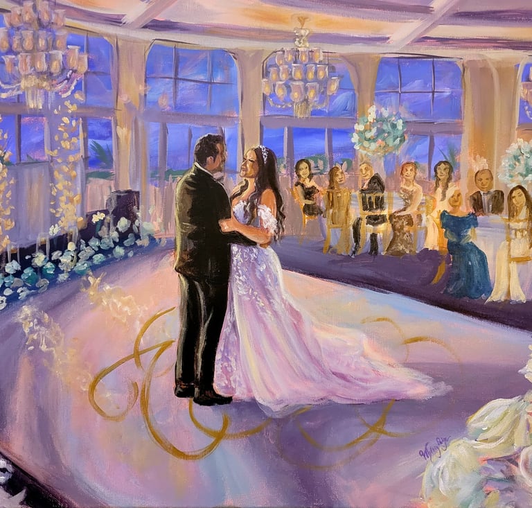 This package will capture the entire desired scene with the couple, venue, and guests. May require additional painting time in the studio, which is included. 2-3 hours of painting before the start of the wedding and an additional 4-5 hours of painting during reception is provided.